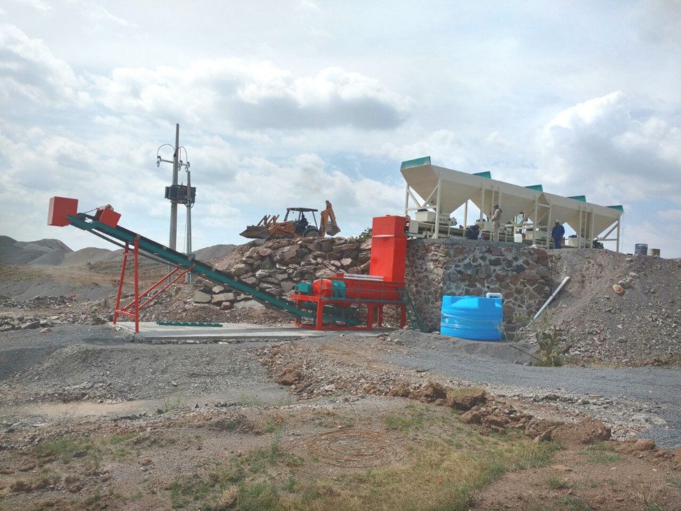 Este sistema consta de 20 mts. de estructura de acero armado para transportar agregados. Utiliza una banda de hule de 24 pulgadas de ancho con 3 capas de acero y se instala vulcanizada. Esto es para evitar instalar grapas que perjudican a los rodillos y produce mucho ruido. Cuenta con ardillas de tracción que dejan pasar la grava para que no se rasgue la misma. Cuenta con un motor reductor de 10 hp. con sistema de tracción de cadena. Cuenta con rodillos de carga de 20 y 34 grados para alinear el material. Cuenta con hule faldón en toda su carrera horizontal para evitar el derrame de material.