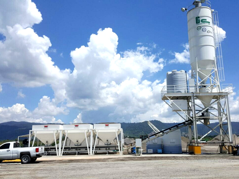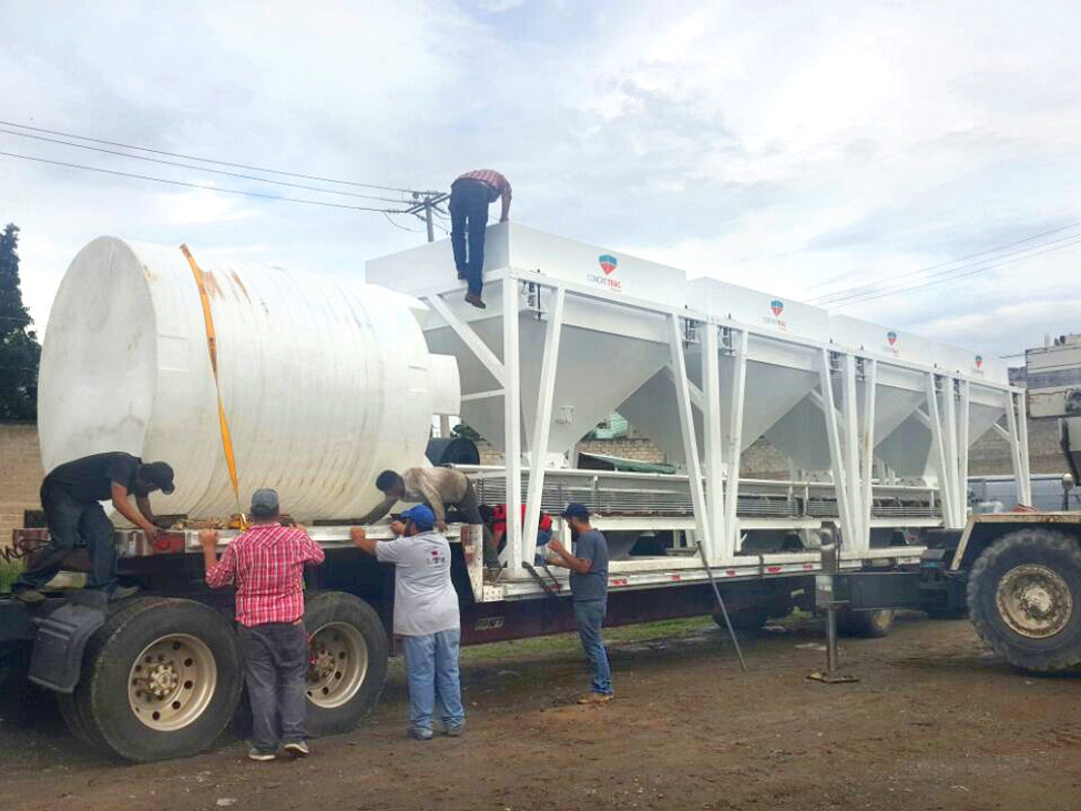 Consta de tres tolvas pesadoras con capacidad de 7 m³ c/u. Se opera por medio de una botonera instalada en el tablero de controles que nos permite dosificar con rapidez el peso deseado. Sistema neumático operado por pistones de 4 pulgadas de diámetro con electro válvula de cinco vías conectado a consola de control. Las tolvas están suspendidas en 4 sensores de carga con cableado oculto en la estructura para evitar que se dañe con golpes. El peso del material a dosificar lo vemos en la pantalla indicadora instalada en el tablero de control. Con la función de BRUTO TARA NETO y opción a impresión de peso.