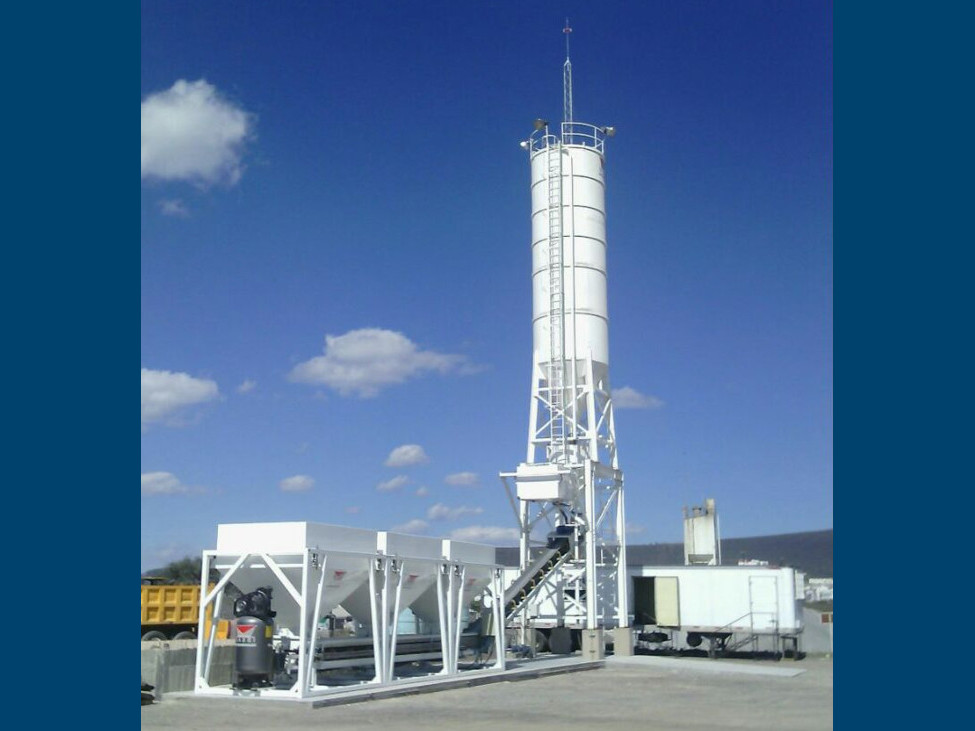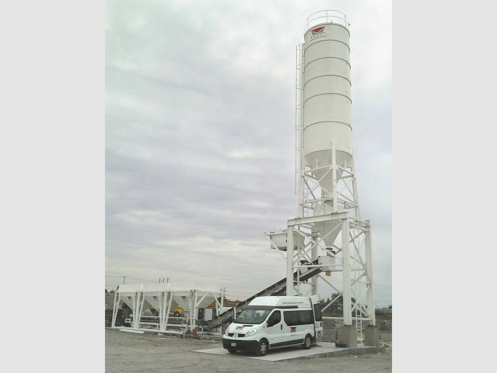 El silo para cemento cuenta con capacidad de 60 ton. Tiene sistema de aireadores que son necesarios para la descarga de cemento.
